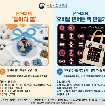 안녕하세요? #국립과천과학관 입니다. 안녕하세요! 따뜻한 봄날, 재미있는 체험을 찾고 계시나요? 이번에 우리 국립과천과학관에서 과학의 달을 맞이해 아주 특별하고 유익한 창작 체험 프로그램 두 가지를 준비했어요! 직접 만든 예쁜 창작물들을 사진으로 남기기에도 너무 좋은 프로그램들이랍니다 ✨ 지금부터 쏙쏙 알기 쉽게 소개해 드릴게요! 첫 번째 체험: [창작체험] '들여다 볼' 이 프로그램은 몽글몽글~ 다양한 촉감 재료를 만져보며 그 느낌이 어떤 감정으로 변하는지 느껴보고, 투명한 공 안에 나만의 감정을 예쁘게 담아보는 체험이에요! 운영 기간: 2026.4.21.(화) ~ 5.21.(목) (과학관 휴관일은.......